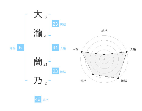 大瀧 蘭乃さんを姓名の画数から五運を鑑定