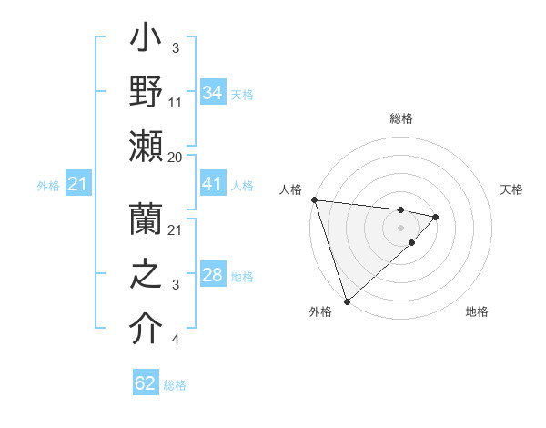 小野瀬 蘭之介さんを姓名の画数から五運を鑑定