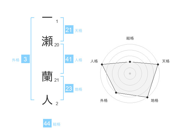 一瀬 蘭人さんの総格は44画の2点!