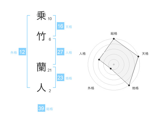 乗竹 蘭人さんの総格は39画の5点!