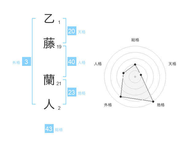 乙藤 蘭人さんの総格は43画の2点!