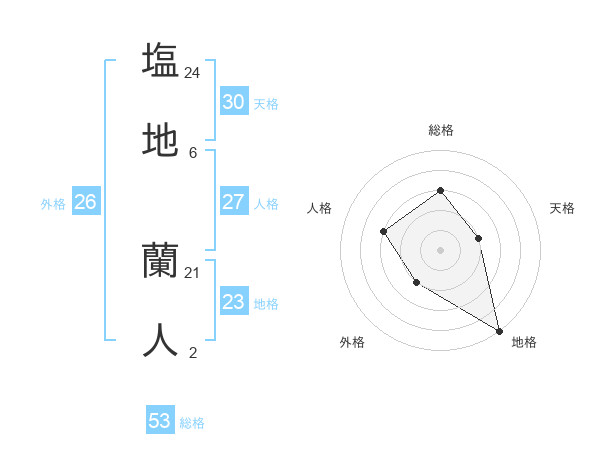 塩地 蘭人さんの天格は30画の2点!