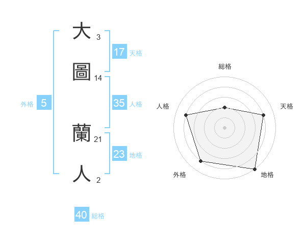 大圖 蘭人さんの地格は23画の5点!
