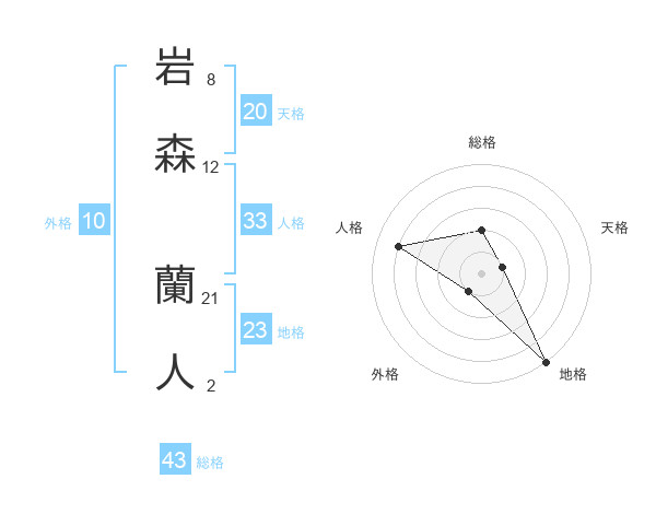 岩森 蘭人さんの総格は43画の2点!