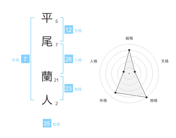 平尾 蘭人さんの総格は35画の4点!