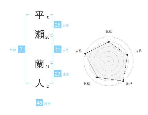 平瀬 蘭人さんの総格は48画の4点!