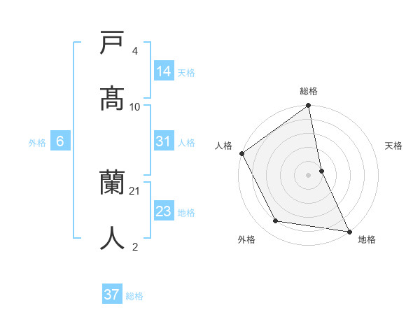 戸髙 蘭人さんの総格は37画の5点!