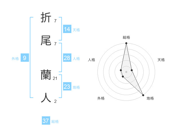 折尾 蘭人さんの総格は37画の5点!