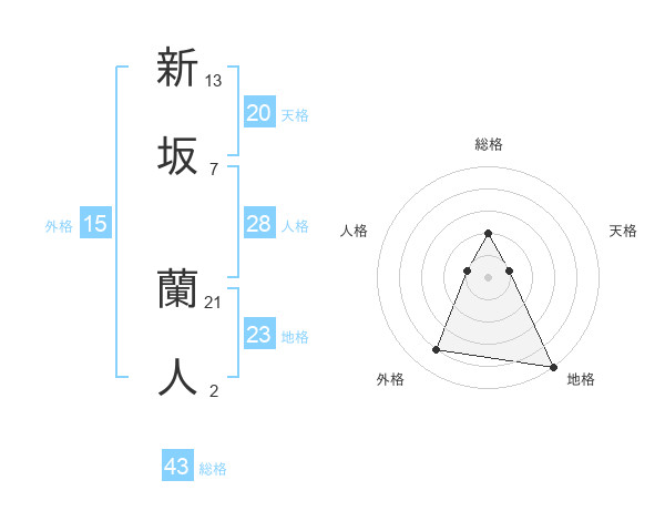 新坂 蘭人さんの総格は43画の2点!