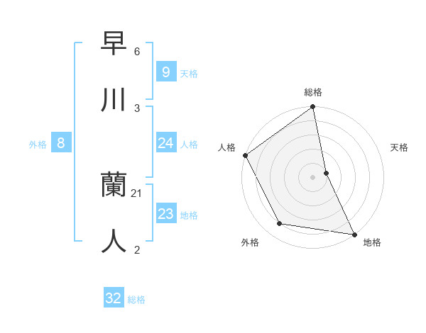 早川 蘭人さんの総格は32画の5点!