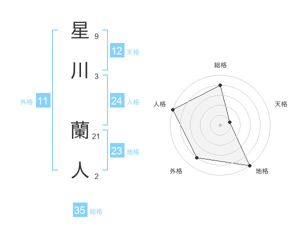 星川 蘭人さんの総格は35画の4点!