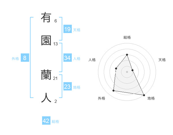有園 蘭人さんの外格は8画の4点!