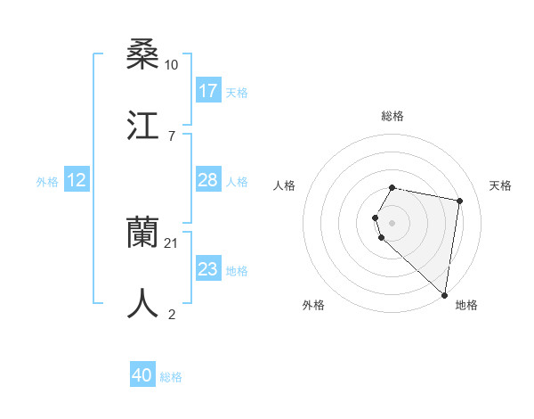 桑江 蘭人さんを姓名の画数から五運を鑑定