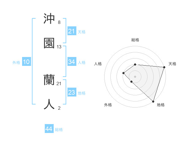 沖園 蘭人さんの総格は44画の2点!