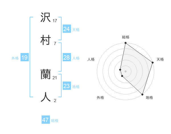沢村 蘭人さんの総格は47画の5点!