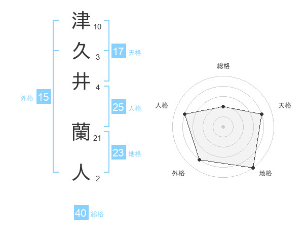 津久井 蘭人さんの天格は17画の4点!