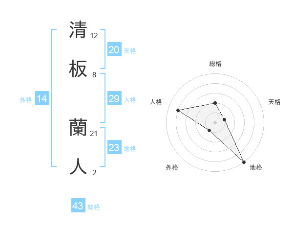 清板 蘭人さんを姓名の画数から五運を鑑定