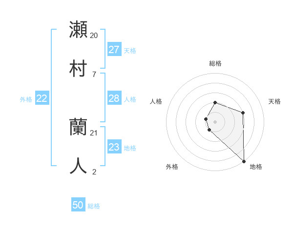 瀬村 蘭人さんの総格は50画の2点!