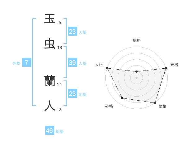 玉虫 蘭人さんの地格は23画の5点!