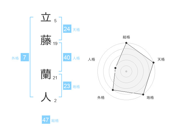 立藤 蘭人さんの総格は47画の5点!