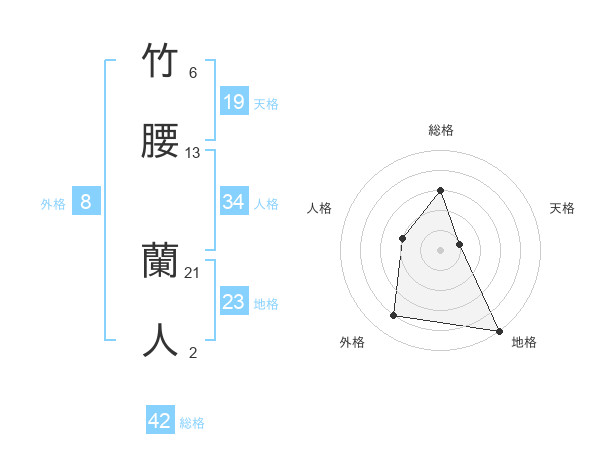 竹腰 蘭人さんの総格は42画の3点!