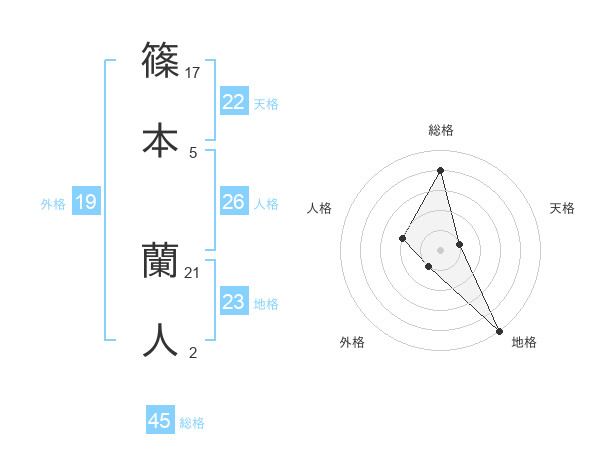 篠本 蘭人さんの総格は45画の4点!
