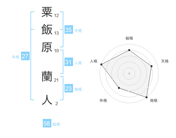 粟飯原 蘭人さんを姓名の画数から五運を鑑定