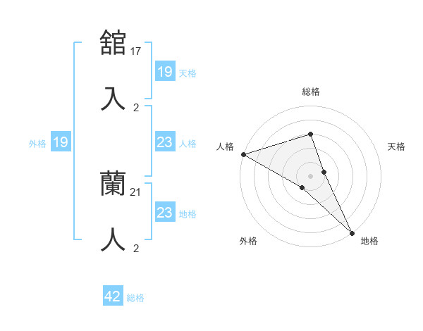 舘入 蘭人さんの外格は19画の1点!