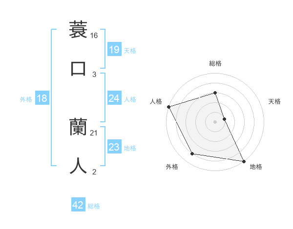 蓑口 蘭人さんを姓名の画数から五運を鑑定