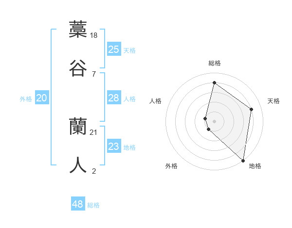 藁谷 蘭人さんを姓名の画数から五運を鑑定