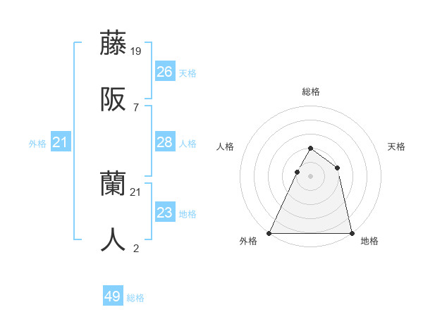 藤阪 蘭人さんの外格は21画の5点!