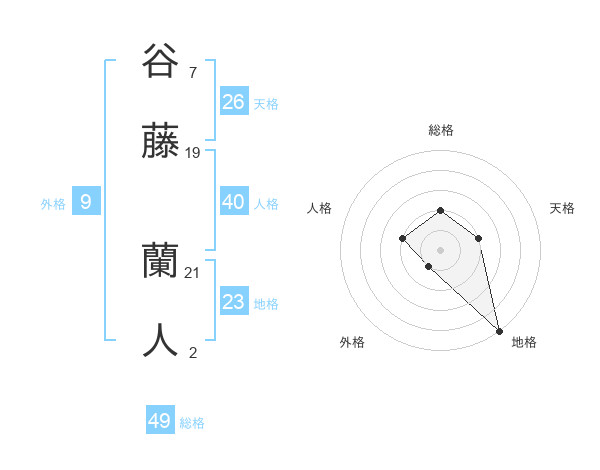 谷藤 蘭人さんの総格は49画の2点!