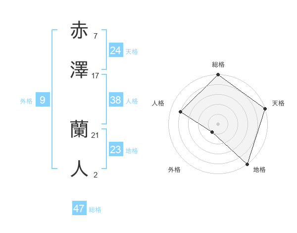 赤澤 蘭人さんの総格は47画の5点!