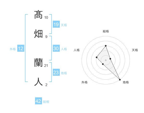 髙畑 蘭人さんを姓名の画数から五運を鑑定
