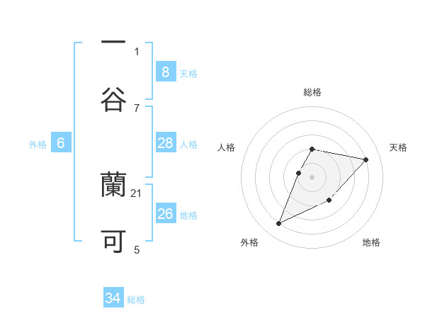 一谷 蘭可さんを姓名の画数から五運を鑑定