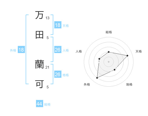 万田 蘭可さんを姓名の画数から五運を鑑定