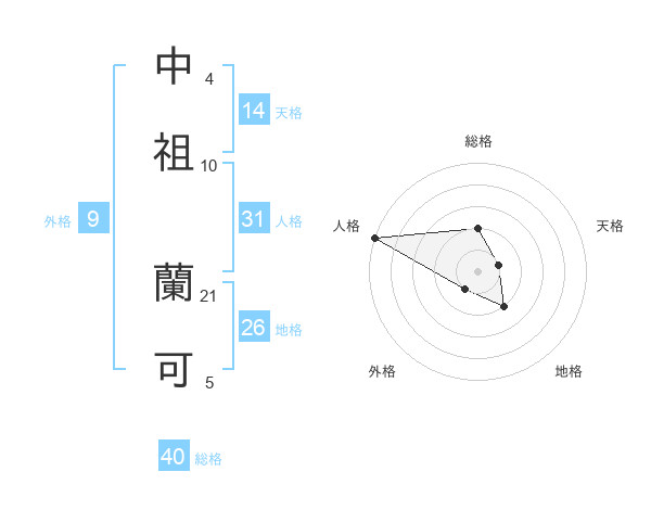 中祖 蘭可さんの天格は14画の1点!