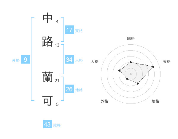 中路 蘭可さんを姓名の画数から五運を鑑定