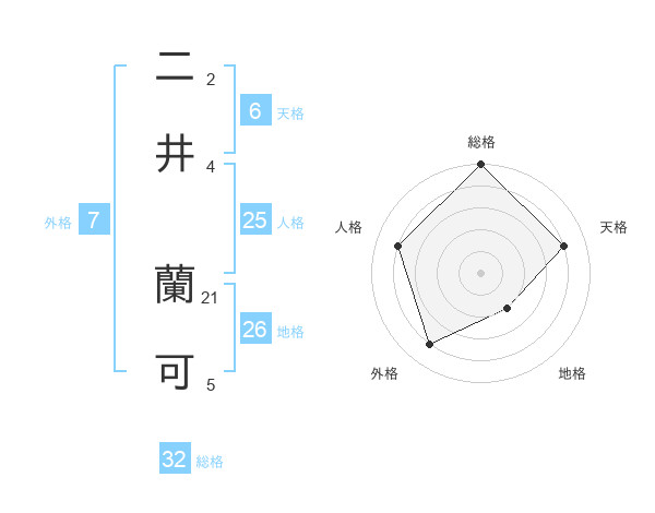 二井 蘭可さんを姓名の画数から五運を鑑定
