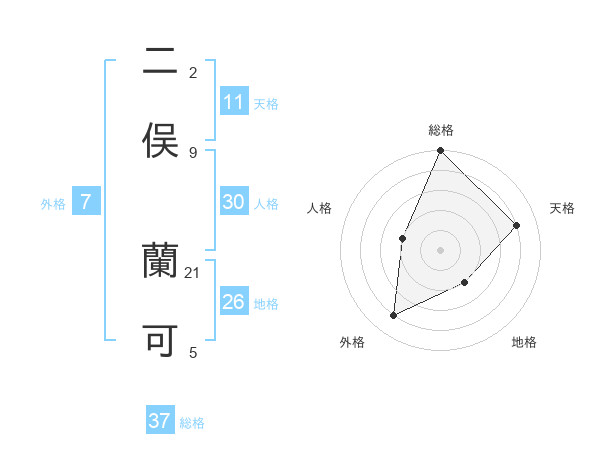 二俣 蘭可さんの総格は37画の5点!