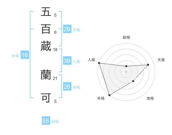五百蔵 蘭可さんの外格は16画の5点!