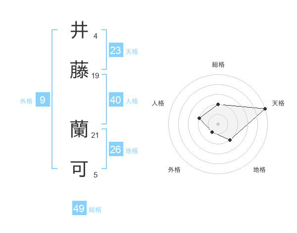 井藤 蘭可さんの天格は23画の5点!