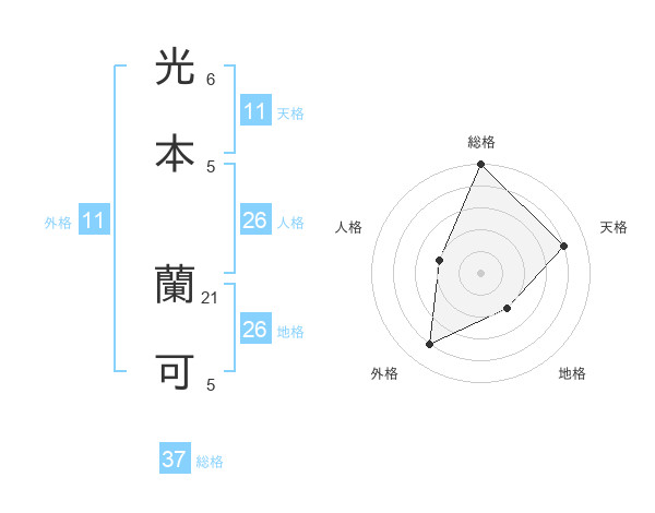 光本 蘭可さんの外格は11画の4点!