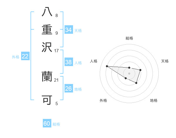 八重沢 蘭可さんの総格は60画の1点!