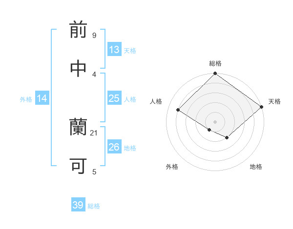 前中 蘭可さんの総格は39画の5点!