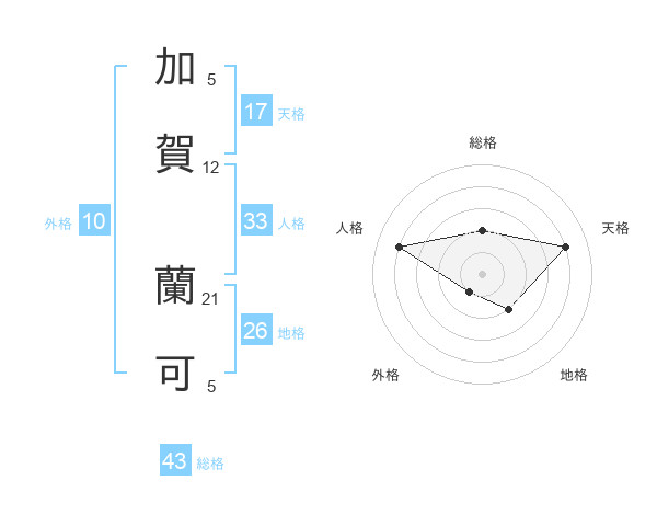 加賀 蘭可さんの天格は17画の4点!
