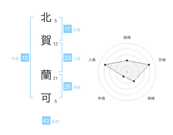 北賀 蘭可さんの天格は17画の4点!