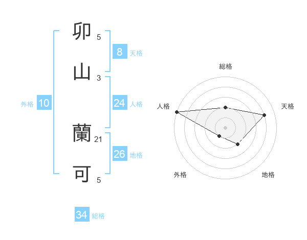 卯山 蘭可さんの人格は24画の5点!