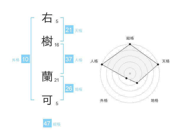 右樹 蘭可さんを姓名の画数から五運を鑑定