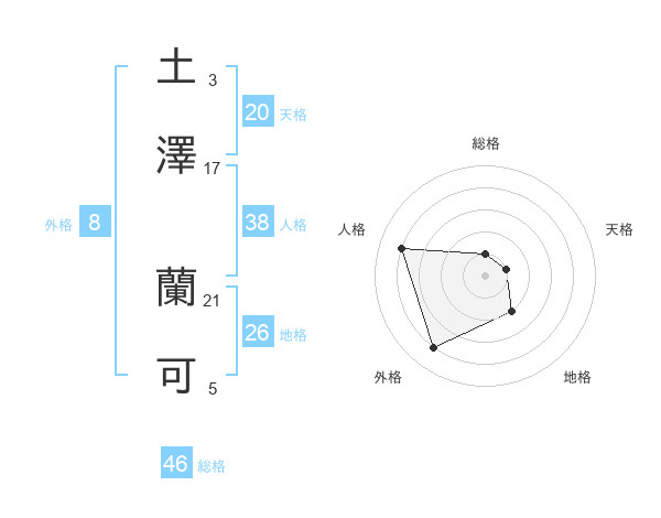 土澤 蘭可さんの天格は20画の1点!